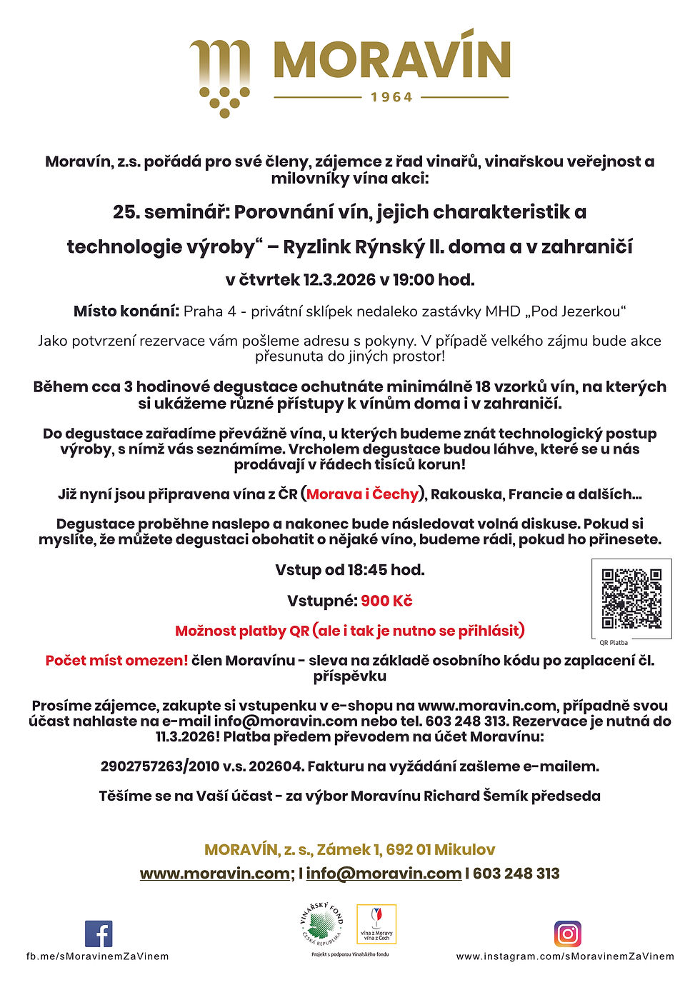 Moravín, svaz moravských vinařů založen 10. října 1964 navazuje svou činností na více než 50. letou existenci a stále zůstává věrný odkazu zakladetelů. Hlavní náplní je především vzdělávací a osvětová činnost. Zastupuje a hájí odborné a společenské zájmy svých členů, poskytuje poradenskou činnost, podporuje zachování rázu vinařského kraje, propaguje naše vinohradnictví a vinařství.